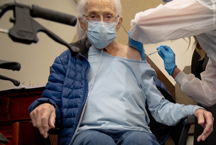 “It feels absolutely a relief,” said Wendy Moench, 69, who was the second resident of The Ridge Foothill to receive the vaccine Tuesday. “I feel happiness. It’s wonderful, a burden off my shoulders. A sense of real relief that they found something that’s going to help us. It feels like a great accomplishment for America.”