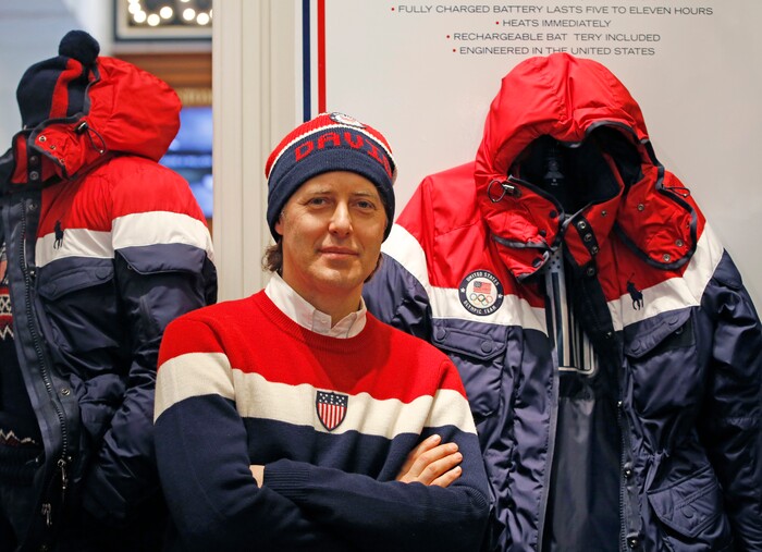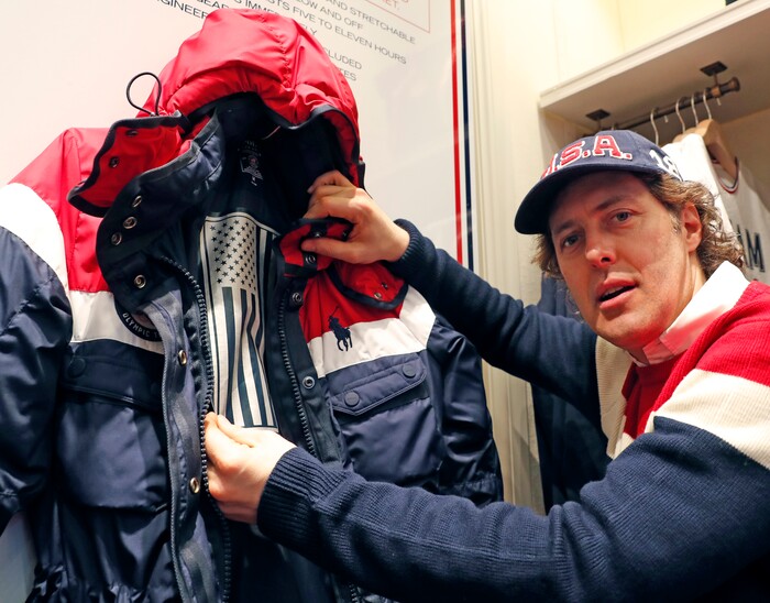 David Lauren, the youngest son of the brand’s namesake and the company’s chief innovation officer, was proud of the technology for the tri-colored parkas in mostly navy blue and the bombers for the end of the Winter Games.