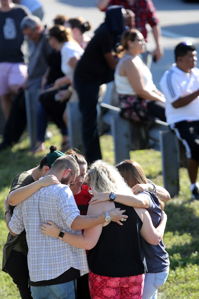 Parents wait for news after a reports of a shooting at Marjory Stoneman Douglas High School in Parkland, Fla., on Wednesday, Feb. 14, 2018. (AP Photo/Joel Auerbach)
