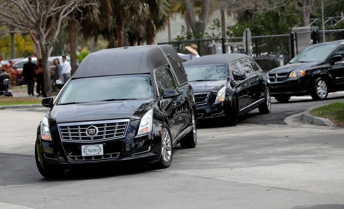 Parkland, Fla. • Each funeral for the victims of the Marjory Stoneman Douglas High massacre is different, yet the same: the mourning relatives, teens walking in clutches wearing black, politicians paying their respects, media cameras pointing at the entrance from across the parking lot.