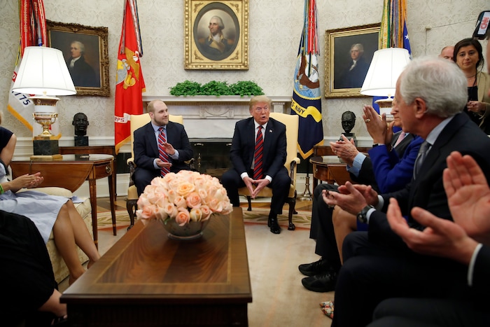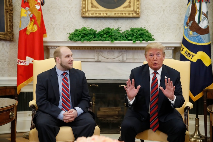 (Alex Brandon | AP Photo) President Donald Trump shakes hands with Joshua Holt, who was recently released from a prison in Venezuela, in the Oval Office of the White House, Saturday, May 26, 2018, in Washington.