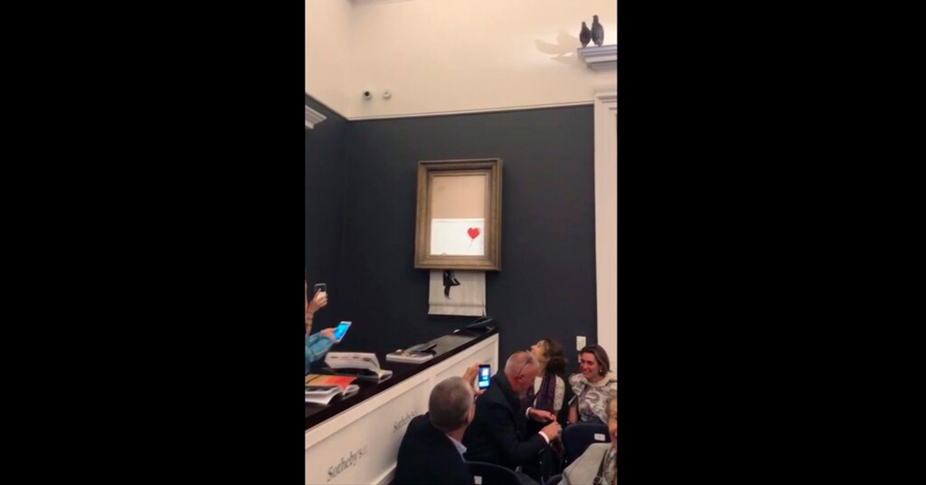 Sotheby's — which had noted before the sale that the work's ornate gilded frame was "an integral element of the artwork chosen by Banksy himself" — appeared as shocked as anyone else.