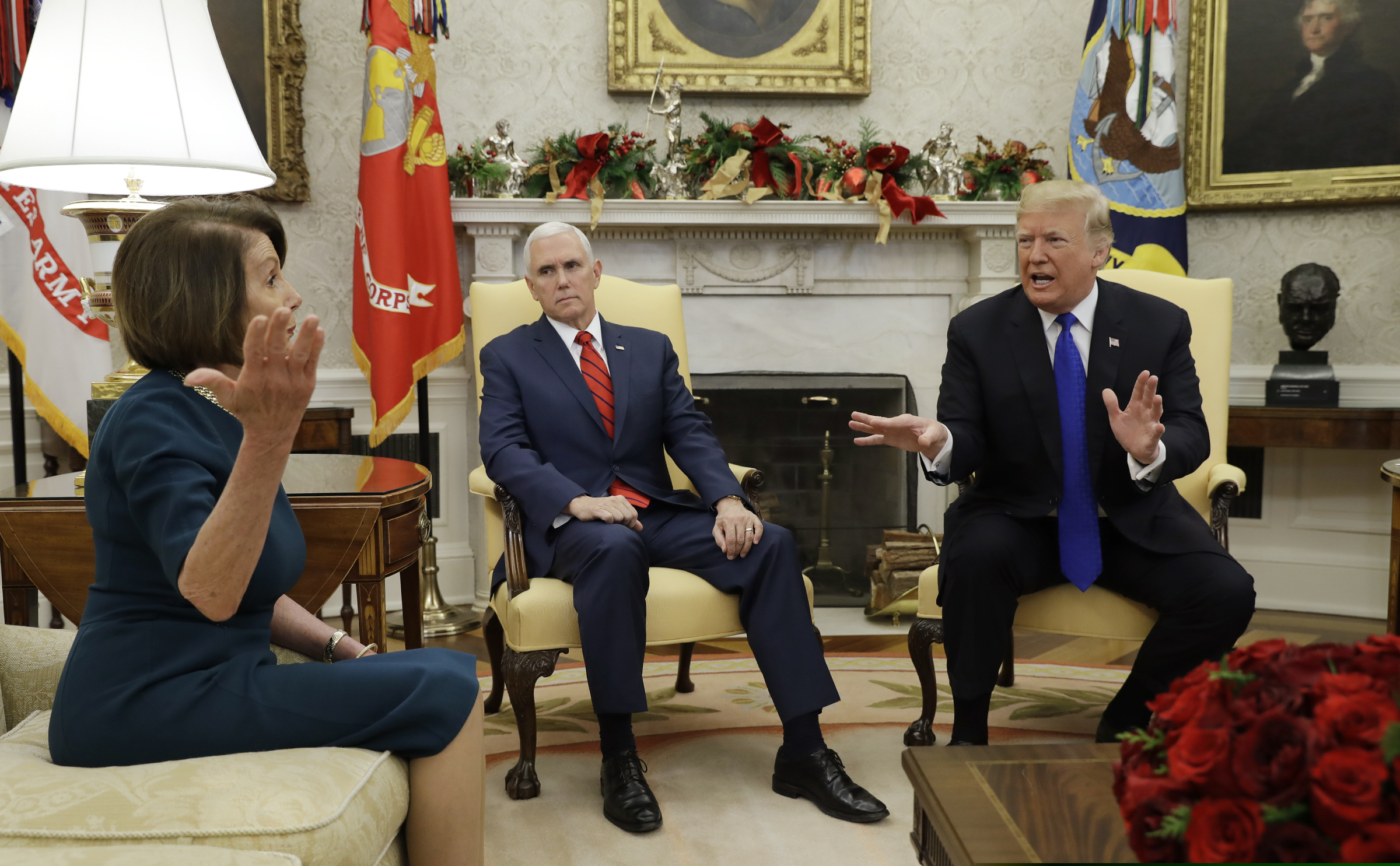Constantly interrupting, Trump squabbled with the Democrats over whether wall funding could be approved in the House or Senate without Democratic votes.
