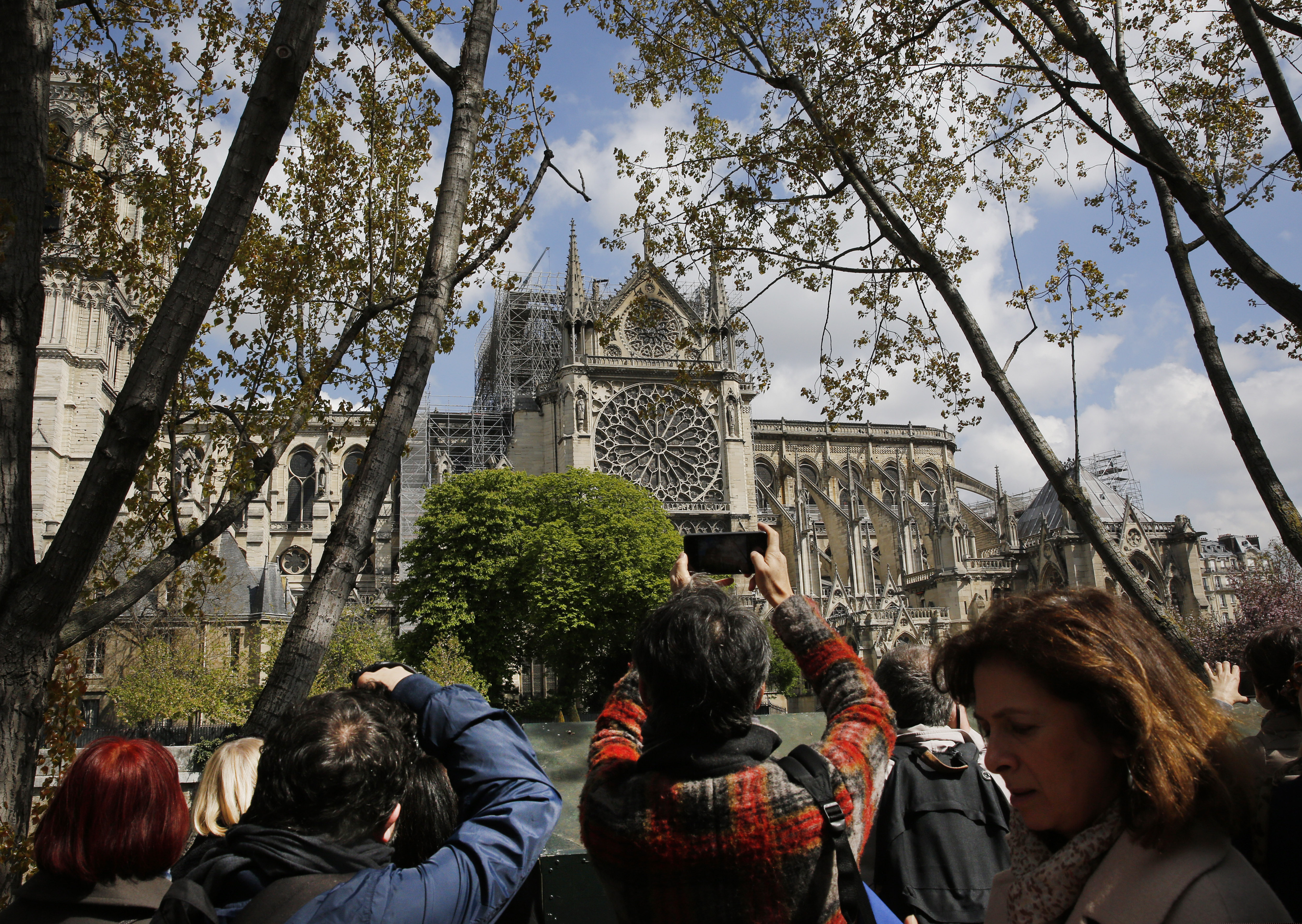 From around the world, more than $700 million in private donations poured in for reconstruction, while Parisians and tourists lined the banks of the Seine, bearing witness from a distance after police closed bridges that give access to the site.