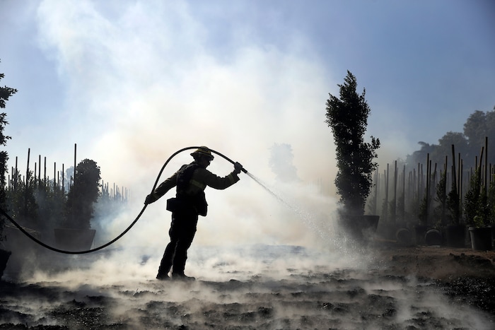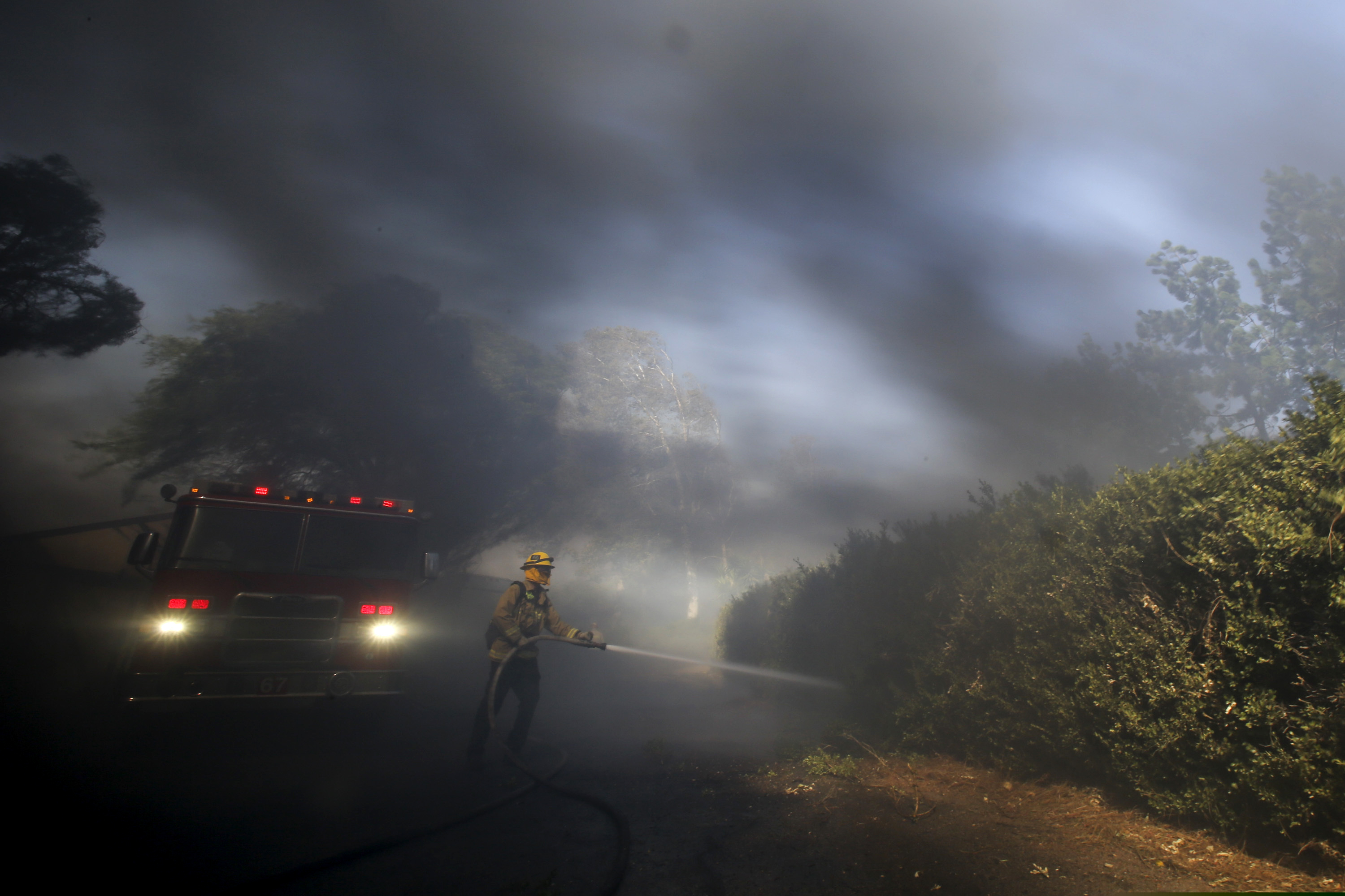 In places where the power stayed on, utility lines and other electrical equipment were suspected or confirmed as the cause of several fires, including the one in Sonoma, another that started on a hillside above the San Fernando Valley of Los Angeles and one that burned around the Ronald Reagan Presidential Library in Simi Valley on Wednesday.