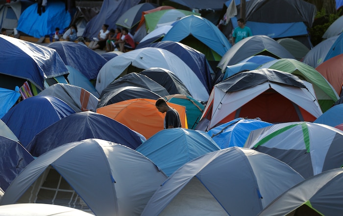 But migrants have largely refused to go. From the camp, they can see a tent courtroom built by the Trump administration on the U.S. side where they go to make their cases by video to judges.