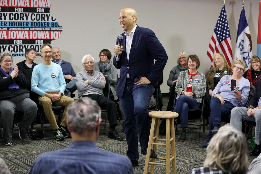 (Daniel Acker | The New York Times) Sen. Cory Booker (D-N.J.) speaks at a campaign event in North Liberty, Iowa, Jan. 9, 2020. Booker dropped out of the Democratic presidential race on Jan. 13, ending a nearly yearlong quest built around a message of peace and unity that failed to resonate with voters eager for a more aggressive posture against President Trump.
