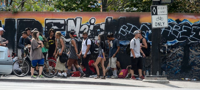 Hughes sometimes describes criminal activity — like the brazen drug dealing that any passer-by encounters if they aren’t in police uniform — that can be enforced without objection. Other times, he veers into discussion of camping and loitering. Cities have fared poorly in federal court challenges when they’ve arrested homeless people for occupying a public space, if those people don’t have a safe alternative.
