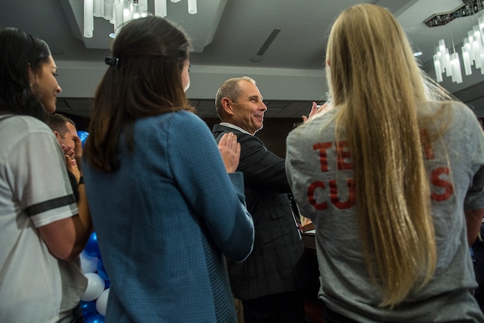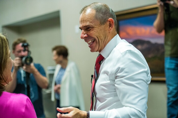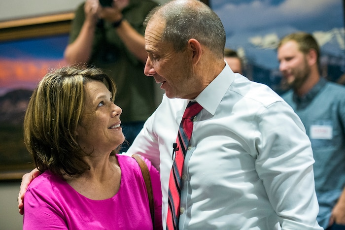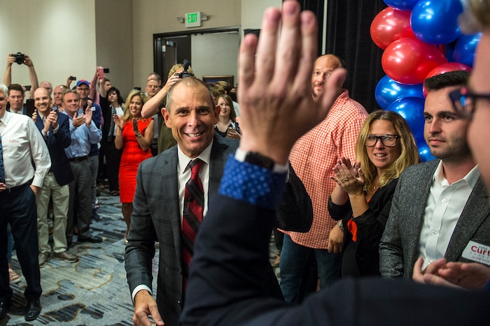 (Chris Detrick | The Salt Lake Tribune) Provo Mayor John Curtis greets his supporters during his election night party at the Provo Marriott Hotel & Conference Center Tuesday, August 15, 2017.