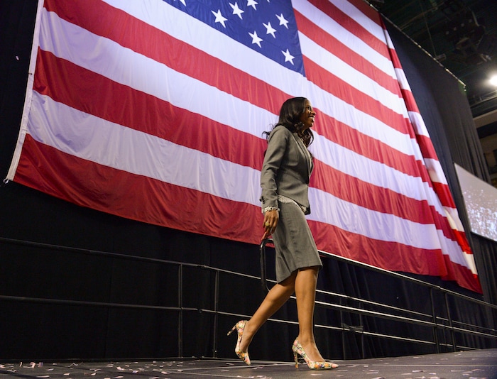 (Leah Hogsten | The Salt Lake Tribune) Mia Love, Representative for Utah's 4th Congressional District, addresses the delegates at the Utah Republican Nominating Convention Saturday, April 21, 2018 at the Maverik Center.