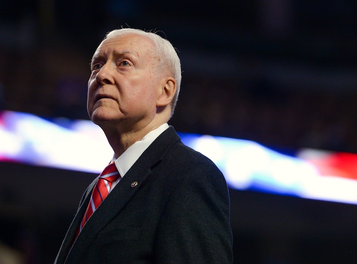 (Leah Hogsten | The Salt Lake Tribune) Retiring seven-term Sen. Orrin Hatch was honored at the Utah Republican Nominating Convention Saturday, April 21, 2018 at the Maverik Center.