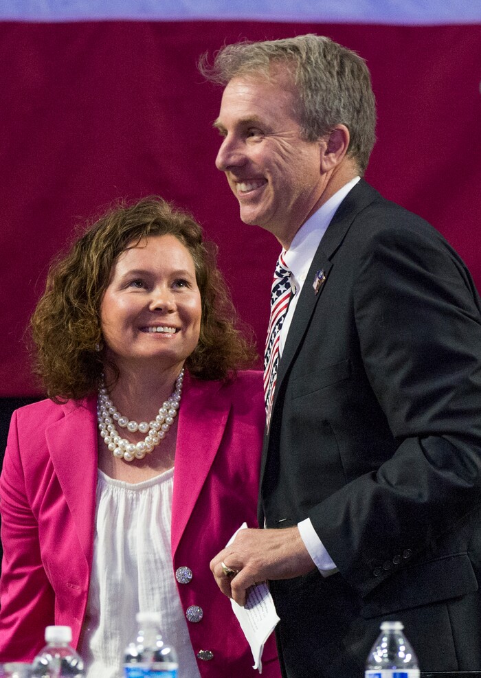 (Leah Hogsten | The Salt Lake Tribune) Incumbent Chris Stewart, Representative for Utah's 2nd Congressional District shown with his wife Evie, won the nomination at the Utah Republican Nominating Convention Saturday, April 21, 2018 with 74% of the vote.