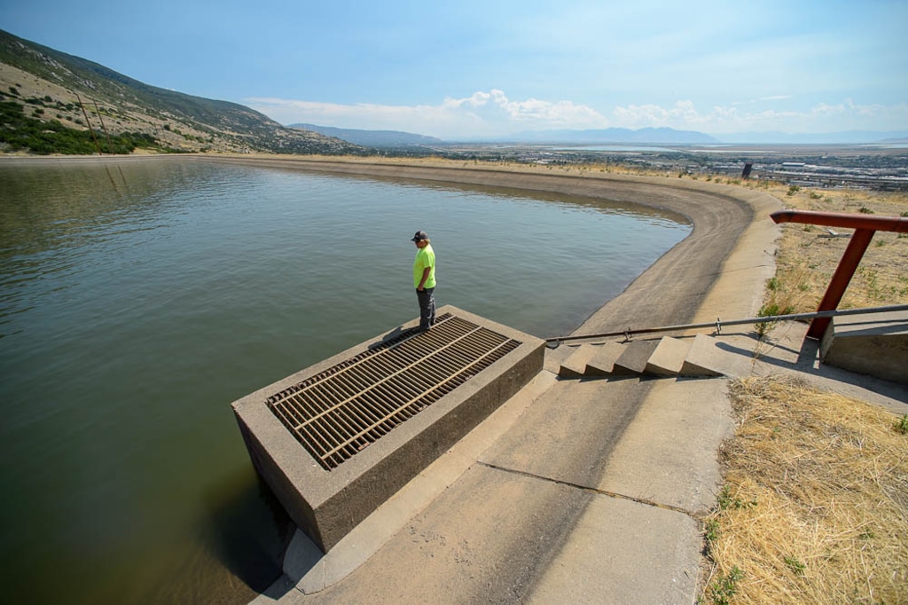 (Trent Nelson | The Salt Lake Tribune) Andy Golden of Benchland Water District at Reservoir B in Farmington, Wednesday July 25, 2018. The reservoir typically holds between 15 and 20 million gallons of water.