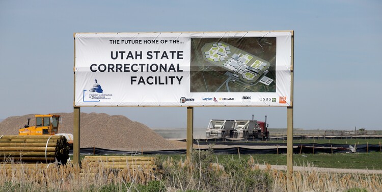 (Rick Bowmer | The Associated Press) In this April 6, 2017, photo, a sign showing the future site of the Utah State Correction facility is displayed near the Salt Lake City International Airport.