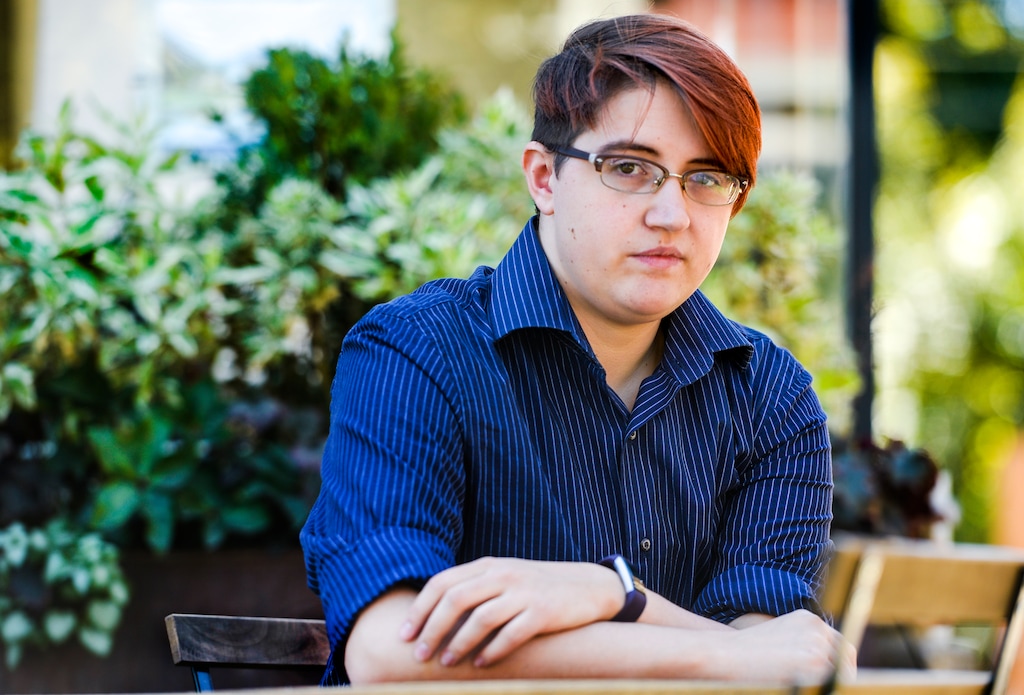 Leah Hogsten | The Salt Lake Tribune Mel Van De Graaff has become one of the first Utahns to receive gender non-binary markers on their government documents, Sept. 26, 2018. Van De Graaff has an "X" on their newly issued driver license and birth certificate rather than an "F" for female or an "M" for male. They spent more than $4,000 and months of time convincing a judge that Utah statute did not prohibit them from receiving gender non-binary markers.