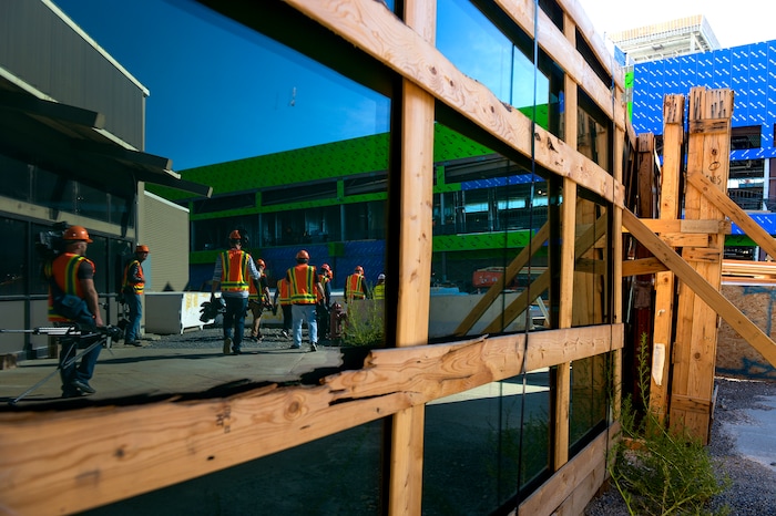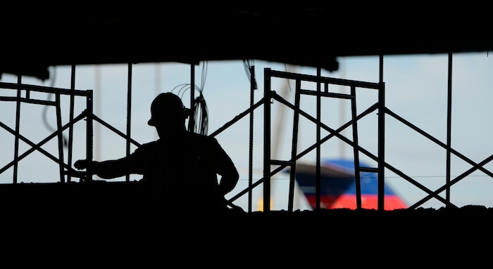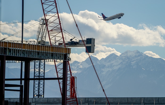Over 1,800 tradesmen are working on the new Salt Lake City International Airport expansion project, Monday, Oct. 22, 2018. The first phase construction of the $3.6 billion project is due to open in 700 days. Nearing completion is the new concourse for aircraft gates, an enclosed terminal, the steel skeleton of a new "gateway" building, a five-story parking garage and elevated roadways.