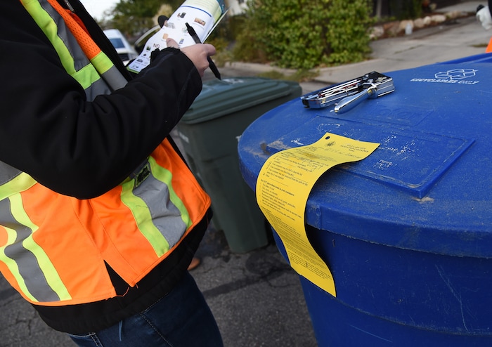 The city doesn’t have enough resources to check every can, so the so-called Recycling Education Team works to target areas that have historically had higher contamination rates. The team tags about 150 cans a week out of the more than the 40,000 they’re able to inspect.