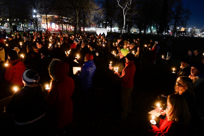 Gloved hands clasped slim white candles on Thursday as the moon came up over Pioneer Park and a list of 121 names echoed into the night.