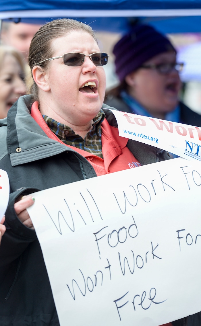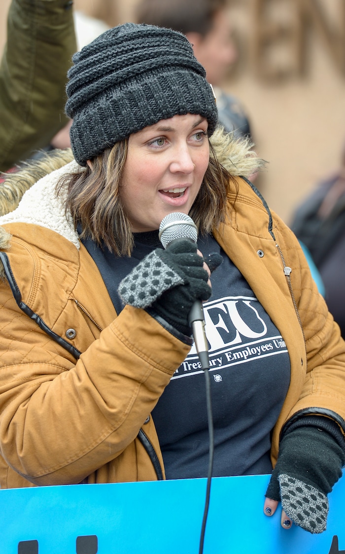 NTEU Treasurer Shelly Carver asked the crowd, “Are you worried about paying your bills?” It responded in unison with a loud “yes.”
