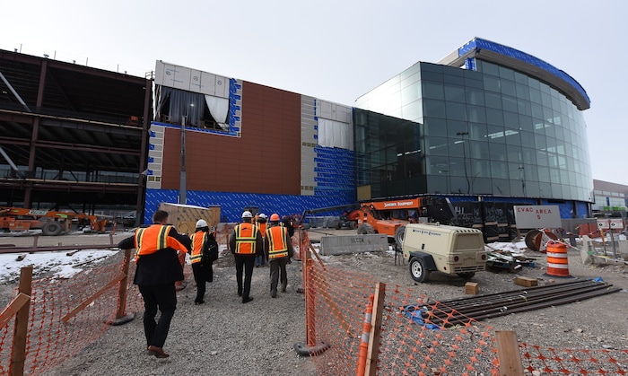(Francisco Kjolseth | The Salt Lake Tribune) What is scheduled to be known as The Canyon, to the left, begins to take shape within Concourse A as Salt Lake City International Airport announces food concessionaires for the first phase of the new expanded airport during a tour on Wed. Feb. 20, 2019.