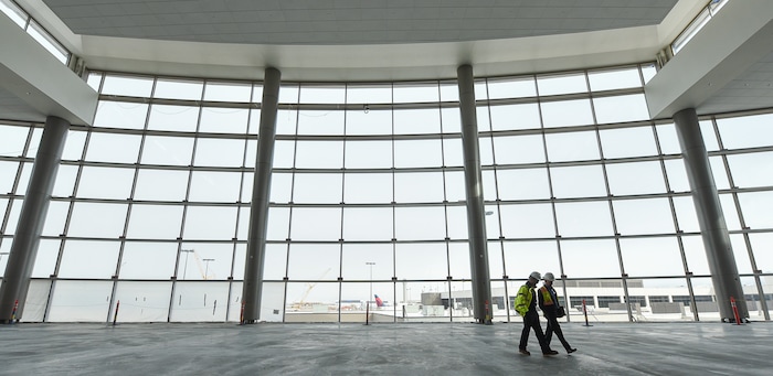 (Francisco Kjolseth | The Salt Lake Tribune) Concourse B begins to take shape in the distance during a recent tour by Salt Lake City International Airport announcing food concessionaires for the new expanded airport on Wed. Feb. 20, 2019.