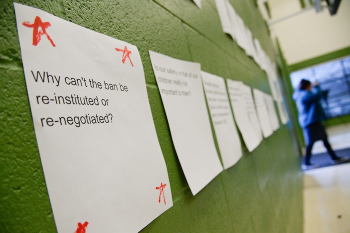 Meeting organizers posted on the school gym walls ideas that people sent online about possibilities to keep the fight going, including: