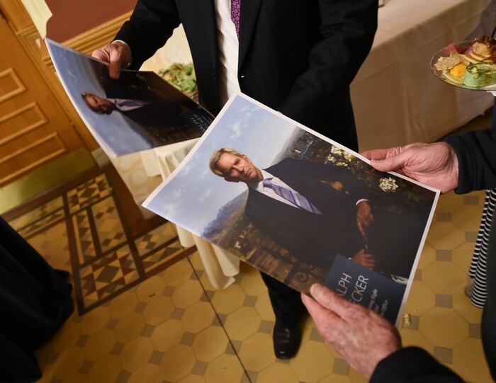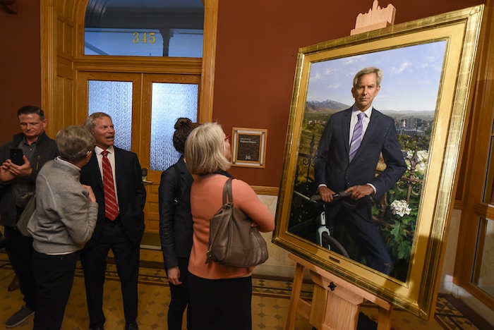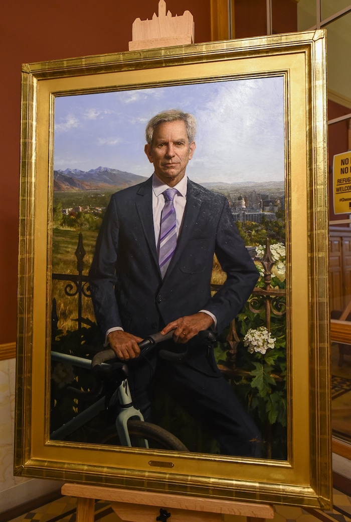 Former Salt Lake City Mayor Ralph Becker was back in City Hall on Wednesday to participate in a portrait unveiling that adds a painting of him to a long line of past occupants of the city’s top office.