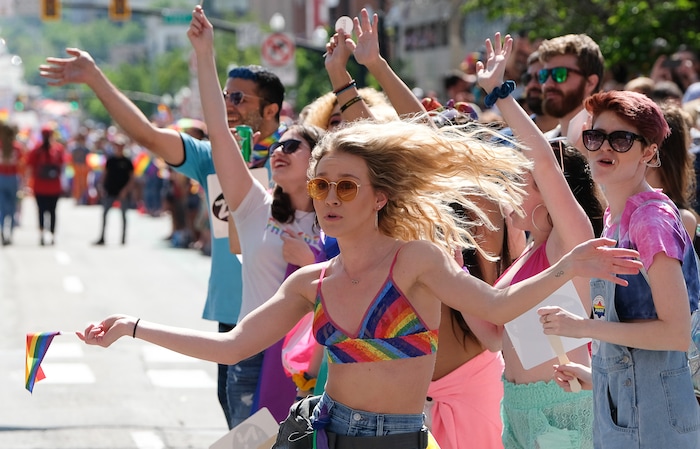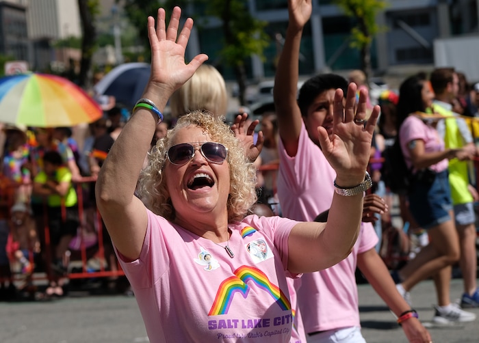 (Francisco Kjolseth | The Salt Lake Tribune) Amber Frederick joins thousands participating in the Utah Pride Parade in Salt Lake City on Sunday June 2, 2019.