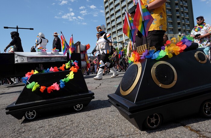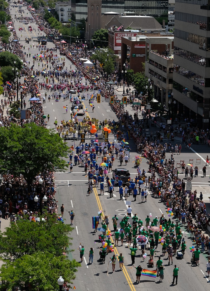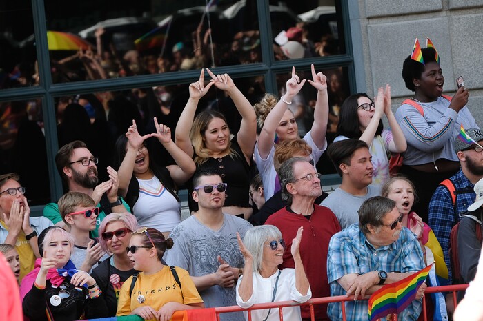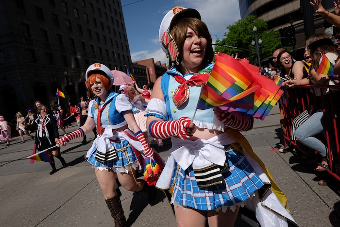 Marchers, roller skaters and float riders streamed down 200 South for about two and a half hours for the 44th annual parade, the highlight of the Utah Pride Festival. Jaxon Gray of Salt Lake, one of thousands of onlookers, said the free-spirited parade acts as a kind of “cleanser” from daily life.