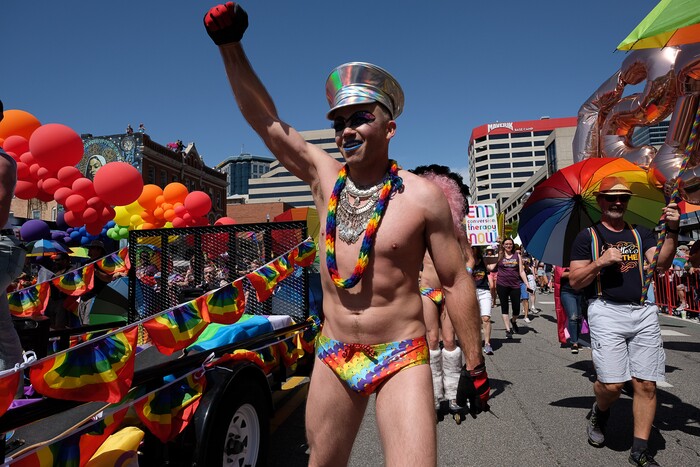 (Francisco Kjolseth | The Salt Lake Tribune) Nate Berg joins thousands participating in the Utah Pride Parade in Salt Lake City on Sunday June 2, 2019.