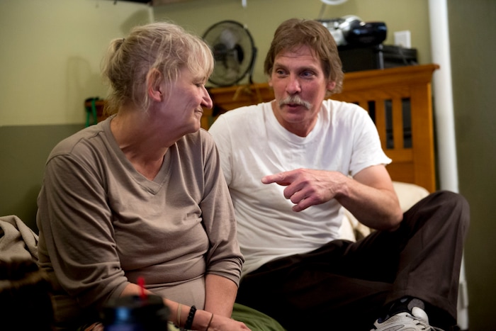They’ve had more than one problem with their plumbing and wish for central air conditioning on hot summer days. “But it beats a tent, let me tell you,” said Ron, gesturing around the apartment the couple share with new tabby cat Sandy.