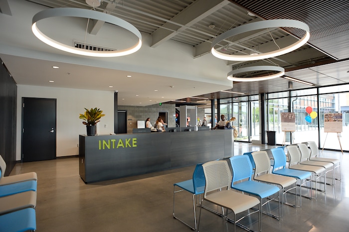 (Francisco Kjolseth | The Salt Lake Tribune) Shelter the Homeless and Catholic Community Services of Utah (CCS) holds a public open house at the Gail Miller Resource Center on Friday, Sept. 6, 2019, with self-guided tours for the public to see the brand new building and learn about the services that will be provided there for both men and women.
