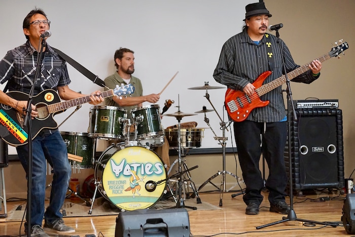 The event was organized by Tewa and Hopi artist Ed Kabotie, lead singer of the Arizona-based reggae-rock group Tha ’Yoties, who performed songs throughout the day at the Bluff Community Center.