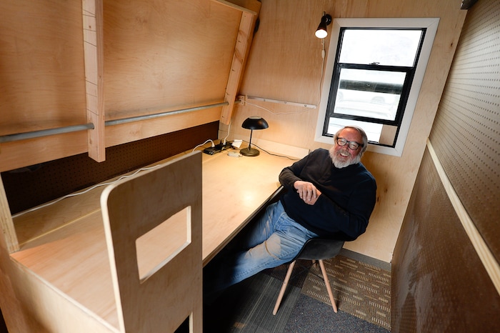 (Francisco Kjolseth | The Salt Lake Tribune) Small-home architect Jeff White gives a tour of his prototype Toaster House parked in South Salt Lake on Wednesday, Oct. 2, 2019. Toaster, an acronym for temporary, orderly, affordable, safe, transportable, effective and respectful, aims to help address a possible gap in homelessness services. He envisions the temporary, 60 square foot spaces as a way to stabilize people and move them into permanent supportive housing in conjunction with Salt Lake City's homeless outreach team.