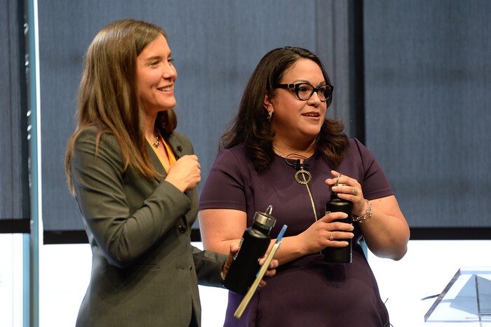 (Francisco Kjolseth | The Salt Lake Tribune) The Downtown Alliance hosts a Salt Lake City mayoral debate between Erin Mendenhall, left, and Luz Escamilla at the Regent Street Black Box at Eccles Theater on Wednesday, October 9, 2019.