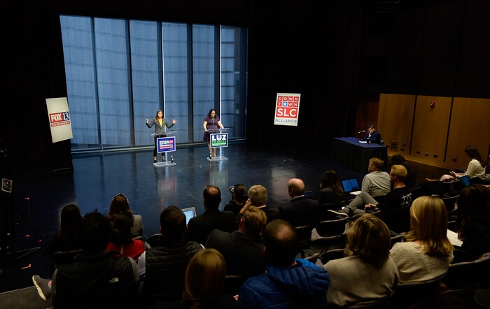 “There has never been a better opportunity for Salt Lake City and our next mayor to dramatically change our grand boulevards,” argued Mendenhall, a Salt Lake City councilwoman, during an hour-long Downtown Alliance debate at the Regent Street Black Box at the Eccles Theater ahead of next month’s general election. “We have to do this.”