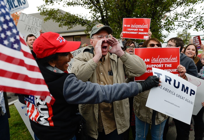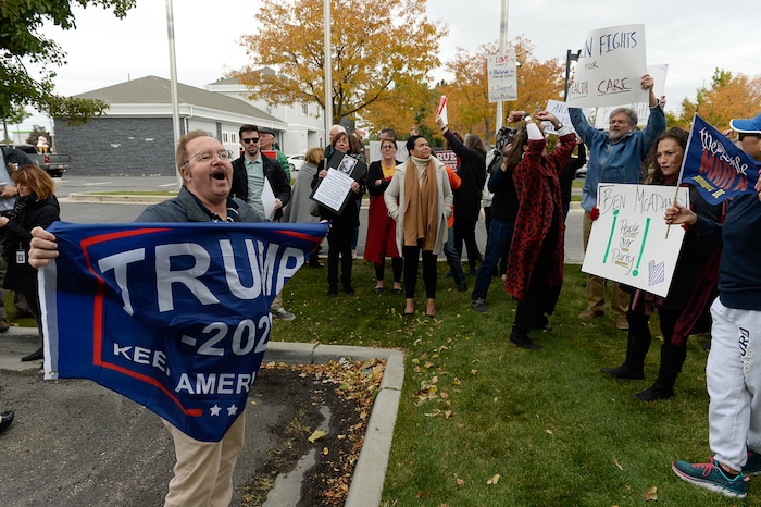 West Jordan • Scores of Utahns butted heads Wednesday — sometimes almost literally — in a parking lot outside the office of Rep. Ben McAdams, D-Utah, to cheer or jeer his belated support of the impeachment inquiry into President Donald Trump.