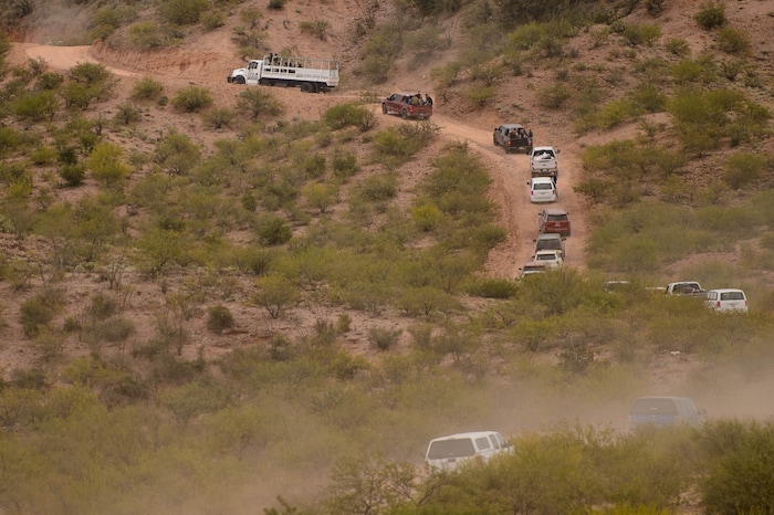 (Trent Nelson | The Salt Lake Tribune) A family convoy carrying victims' remains passes the site where two vehicles were attacked by gunman, killing Dawna Ray Langford and Christina Marie Langford, along with two of Dawna's children (Trevor, 11, and Rogan, 3) near La Mora, Sonora, on Friday, Nov. 8, 2019.