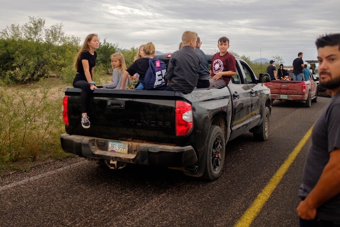(Trent Nelson | The Salt Lake Tribune) A convoy carries the remains of the Miller children, who were killed by gunman, to a funeral in Colonia LeBaron, Chihuahua, on Friday, Nov. 8, 2019. The Miller children are Howard Jacob Jr., 12; Krystal Bellaine, 10; Titus Alvin Miller, 8 months; and his twin sister, Tiana Gricel.