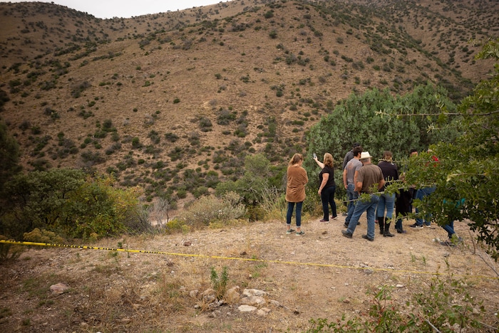 At the bottom of one canyon road, those traveling in trucks in the back of the caravan looked up. They wondered — and worried — about the men standing on the ridge. Who were they? They turned out to be news photographers who had stopped to photograph from the spot where gunmen fired on Dawna Langford and Christina Johnson’s SUVs.