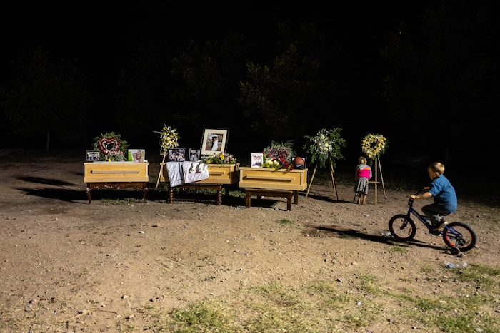 “I literally don’t know what will happen,” Melanie Langford, another relative to some of the deceased, said at a community steak and chicken fry served after the funerals, “but I’m not coming back until I know it’s safe.”