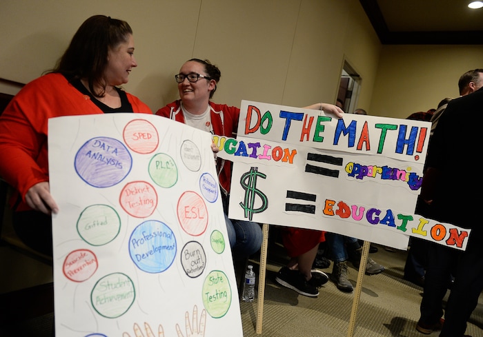 And Michele Jones, a high school math teacher, questioned the characterization of some task force members that education would be “held harmless” by cuts to the income tax and, potentially, an constitutional amendment.