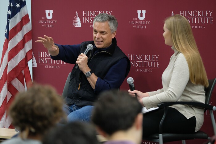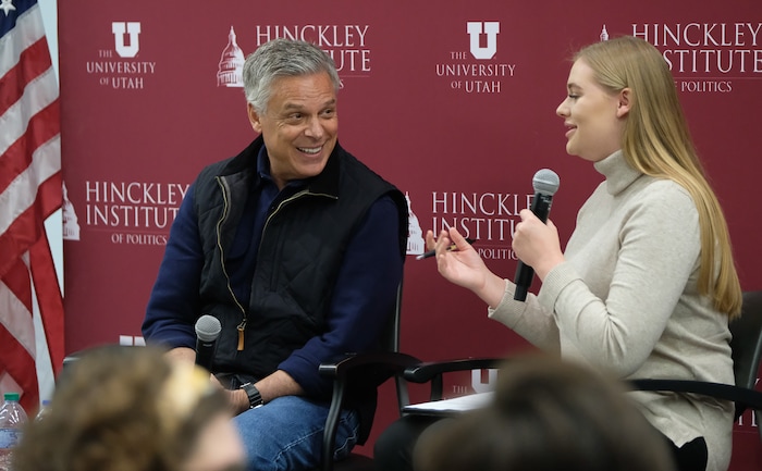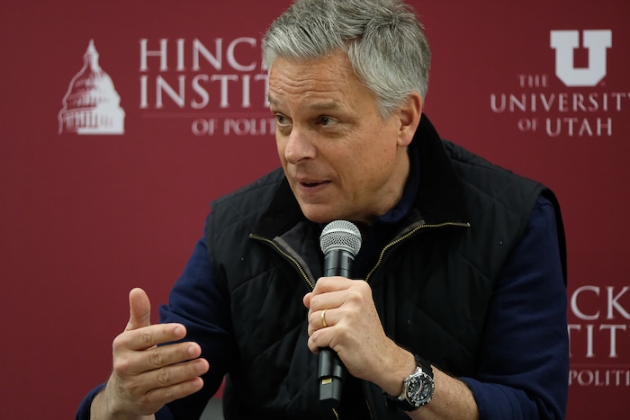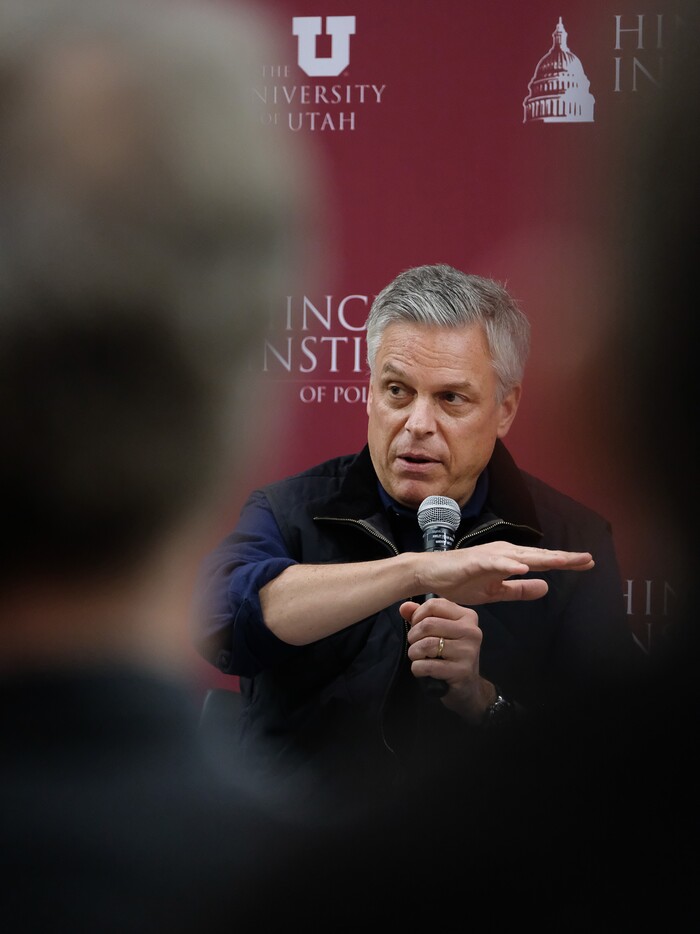 Huntsman, who recently declared his candidacy for Utah governor in next year’s election, was speaking at a lunchtime event at the University of Utah’s Hinckley Institute of Politics. He said he has worked with diplomats for many years and considers himself to be one of them, and praised their role in building coalitions and maintaining international relationships.