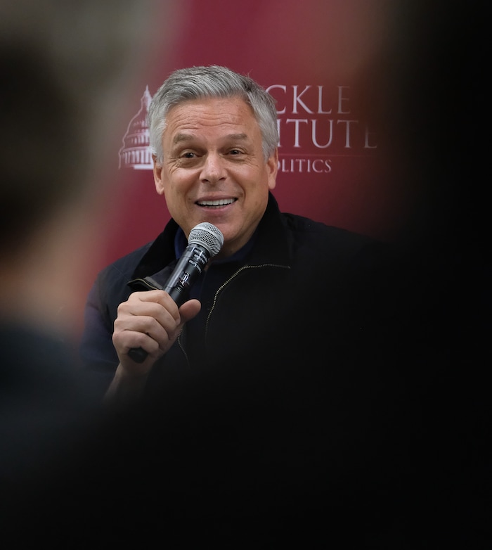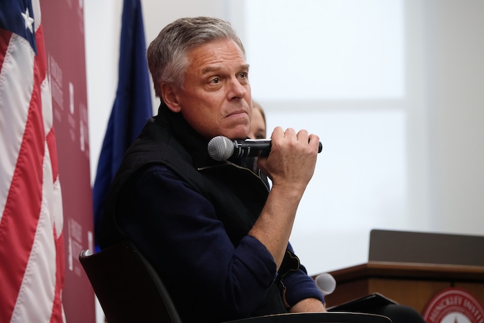 (Francisco Kjolseth | The Salt Lake Tribune) Former Utah Governor and Ambassador Jon Huntsman speaks at the Hinckley Institute of Politics on the University of Utah campus on Thursday, Dec. 5, 2019, to discuss his long career in public service spanning from UtahÕs GovernorÕs Mansion to Chinese and Russian ambassadorships and examine the increasing significance Utah plays in our globalized world.