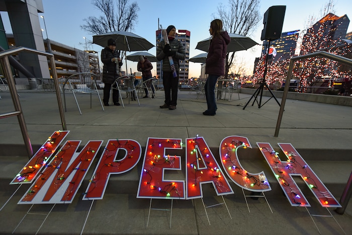 A crowd of hundreds gathered Tuesday evening in Salt Lake City to rally in support of impeaching President Donald Trump, ahead of a scheduled vote on articles of impeachment in the U.S. House on Wednesday.