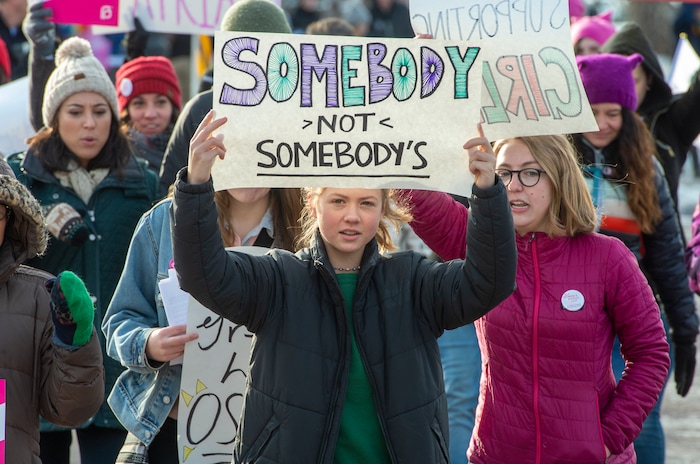 (Rick Egan | The Salt Lake Tribune) Nine-year-old Vivian Blackmon, holds a sign at the Utah State Capitol after marching up State Street, in the 2020 Womxn's March in Salt Lake City, Saturday, Jan. 18, 2020.