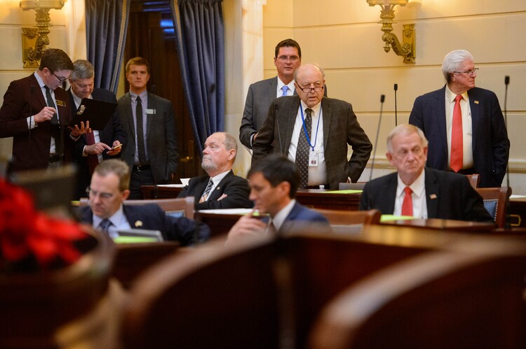 (Trent Nelson | Tribune file photo) Sen. Lyle Hillyard, R-Logan, and other lawmakers listen to proposed amendments to Senate Bill 2001 in the Senate Chamber in Salt Lake City, Dec. 12, 2019, as lawmakers hold a special session focusing on tax reform.