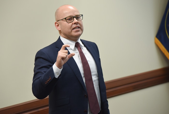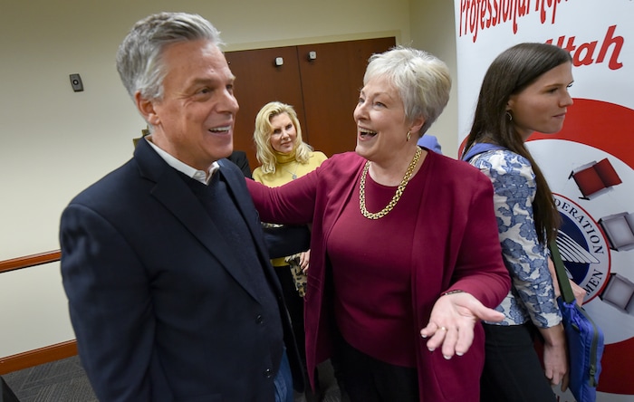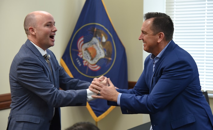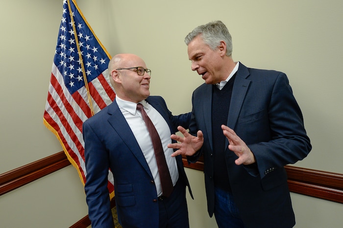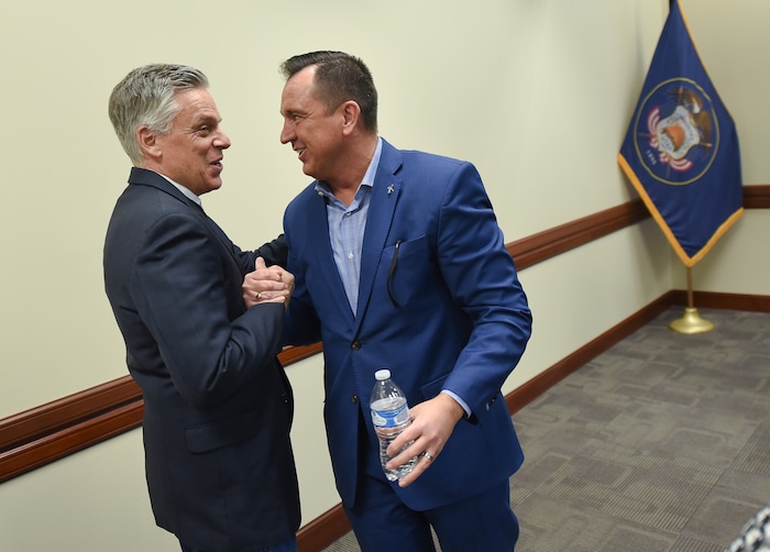 (Francisco Kjolseth | Tribune file photo) Gubernatorial candidate Thomas Wright, left, announces Rep. Rob Bishop as his running mate in the 2020 election, during a press event at the Kem C. Gardner Policy Institute in Salt Lake City on Thursday, Jan. 16, 2020.