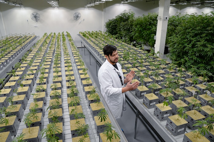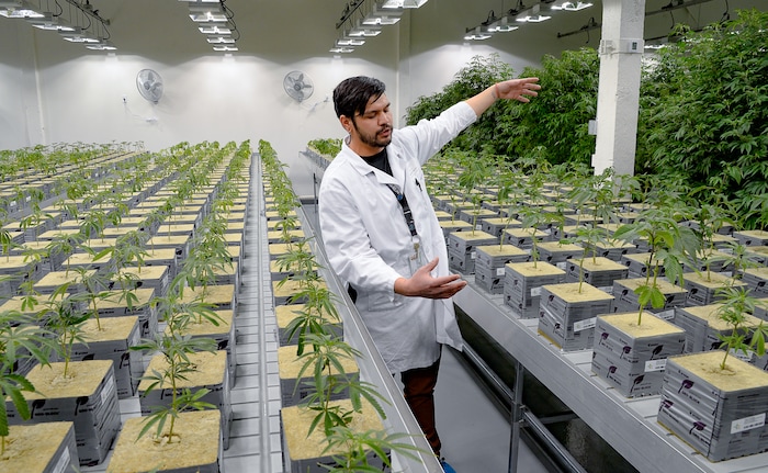 (Francisco Kjolseth | The Salt Lake Tribune) Assistant General Manager Patrick Quino, gives a tour of the propagation room containing the genetic makeup of every variety of plant cultivated at Tryke, a new cannabis farm in Tooele, on Thursday, Jan. 30, 2020. The company, one of eight cultivators approved by the state, is expected to have product available for patients by March as part of Utah's medical cannabis program.