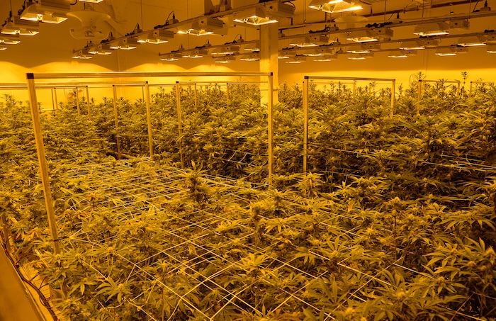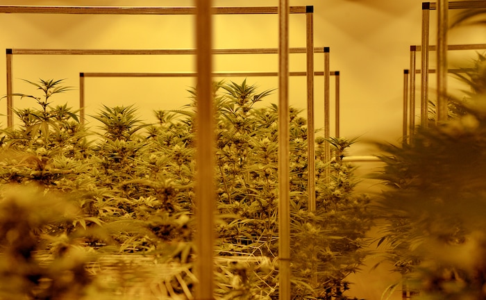 (Francisco Kjolseth | The Salt Lake Tribune) High pressure sodium lights cast a yellow tint over cannabis plants being triggered to make them flower at Tryke, a new cannabis farm in Tooele, on Thursday, Jan. 30, 2020.